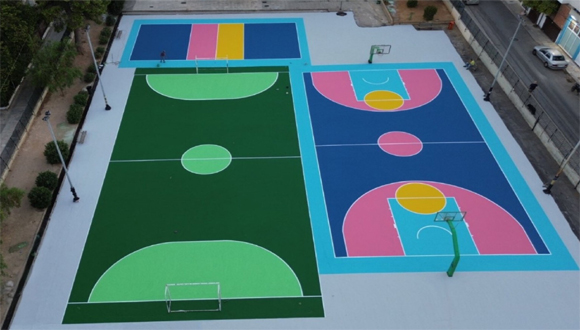 Ολοκληρώθηκαν οι εργασίες και παραδόθηκαν 10 νέα γήπεδα σε αύλειους χώρους σχολείων.