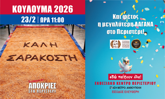 σε συνεργασία με τον Δήμο Περιστερίου, διοργανώνουν και φέτος μια μεγάλη, ανοιχτή γιορτή για τον εορτασμό της Καθαράς Δευτέρας, προσκαλώντας όλους τους πολίτες σε ένα αυθεντικό παραδοσιακό αντάμωμα αφιερωμένο στα έθιμα της ημέρας. Στο επίκεντρο της εκδήλωσης θα βρεθεί η μεγαλύτερη Λαγάνα που έχει παρασκευαστεί ποτέ, εντυπωσιακών διαστάσεων, η οποία θα καλύπτει πολλά τετραγωνικά μέτρα και θα αποτελέσει το ξεχωριστό σύμβολο της φετινής γιορτής. Η εκδήλωση θα πραγματοποιηθεί τη Δευτέρα 23 Φεβρουαρίου 2026 και ώρα 11:00, στο Εκθεσιακό Κέντρο Περιστερίου (στάση Μετρό «Ανθούπολη»), με ελεύθερη είσοδο για όλους. Την παρασκευή της μεγαλύτερης Λαγάνας θα αναλάβουν έμπειροι αρτοποιοί από τους Φούρνους της Γειτονιάς, χρησιμοποιώντας: 320 κιλά αλεύρι τεσσάρων ποικιλιών, 80 κιλά εκλεκτό σουσάμι, 30 λίτρα σησαμέλαιο, 22 κιλά ταχίνι, αλάτι, ζάχαρη και μαγιά. Στη διανομή θα συμμετέχουν ενεργά οι εθελοντές της ΑΜΚΕ ΕΛΛΑΔΟΣ ΑΡΤΟΣ (ΕΛΑΡΤ), συμβάλλοντας καθοριστικά στην επιτυχία της μεγάλης αυτής γιορτής. Οι παρευρισκόμενοι θα έχουν την ευκαιρία να απολαύσουν χιλιάδες μερίδες σαρακοστιανών εδεσμάτων, λαγάνες και κρασί, σε μια εκδήλωση που θα κορυφωθεί με μεγάλο παραδοσιακό γλέντι, με την αγαπημένη μας Γωγώ Τσαμπά, συνοδεία του κλαρίνου του Νεκτάριου Κοκκώνη.