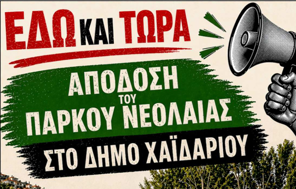 "Το Δημοτικό Συμβούλιο Χαϊδαρίου, για ακόμα μία φορά τοποθετείται ενάντια στην πρόθεση αλλαγής χρήσης του Πάρκου Νεολαίας, είτε από το Υπουργείο Κοινωνικής Πολιτικής και Οικογένειας, είτε από το Υπουργείο Εθνικής Άμυνας.