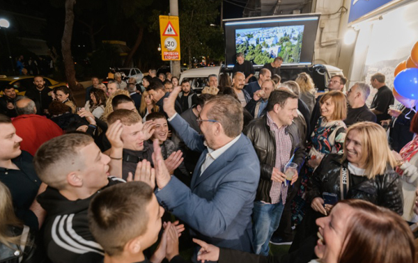 Μία γιγαντοοθόνη έδειχνε την αποτυπωμένη δράση του υποψήφιου Δημάρχου,