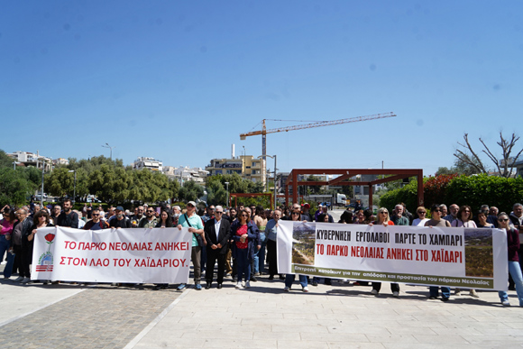 του Δήμου – μετά από ομόφωνη απόφαση του Δημοτικού Συμβουλίου – και συγκεντρώθηκαν στην Πλατεία Δημαρχείου το πρωί της Κυριακής 26 Απριλίου, για να διατρανώσουν πως δεν θα επιτρέψουν να υλοποιηθούν οι σχεδιασμοί της κυβέρνησης για το Πάρκο Νεολαίας και πως αυτό θα πρέπει να αποδοθεί στον λαό της πόλης. Την κεντρική ομιλία της συγκέντρωσης έκανε ο Δήμαρχος Χαϊδαρίου Μιχάλης Σελέκος, ο οποίος σημείωσε πως οι εξελίξεις με το Πάρκο Νεολαίας αποτελούν ακόμα ένα αντιλαϊκό σχέδιο της κυβέρνησης, για το οποίο όμως την τελική απόφαση μπορεί να την πάρει ο λαός. Σχετικά με τις κυβερνητικές εξαγγελίες, υπενθύμισε πως – σύμφωνα και με όσα είπαν στον πρόσφατο Δημοτικό Συμβούλιο ο Υφυπουργός Άμυνας Αθανάσιος Δαβάκης και ο Γενικός Γραμματέας του Υπουργείου Κοινωνικής Συνοχής και Οικογένειας – προβλέπεται πως στο 70% του Πάρκου επί της ουσίας θα γίνει «πάρτι» εργολάβων και κατασκευαστών, και σε ένα 30% υπόσχονται κοινωνικές κατοικίες, που όμως και αυτές θα δίνονται με προϋποθέσεις και με δάνεια.