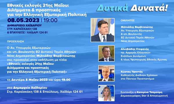 Εκδήλωση με θέμα «Εθνικές Εκλογές 21ης Μαΐου: Διλήμματα και Προοπτικές