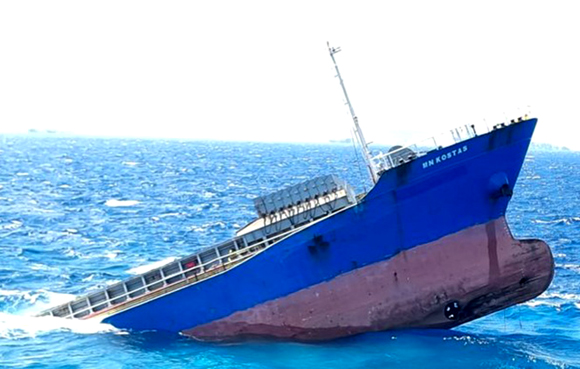 Κάθετη βύθιση προς τα δεξιά, με την πλώρη να εξέχει του ύδατος, παρουσιάζει το φορτηγό πλοίο «MN KOSTAS»,