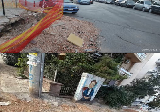 Στην πρώτη φωτογραφία, βλέπετε το "ρημαδιό" που έχει προκαλέσει η ΕΥΔΑΠ στη γωνία των οδών Ιωνίας και Δεληγιώργη,