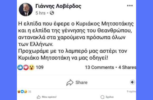 Ο λόγος, για τις fake ευχές που υποτίθεται ότι έκανε στο διαδίκτυο, ο «σταυραετός» της πολιτικής, ο Βουλευτής της Νέας Δημοκρατίας στη Δυτική Αθήνα, Γιάννης Λοβέρδος.