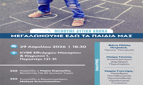 Η εκδήλωση «Μένουμε Δυτική Αθήνα – Μεγαλώνουμε εδώ τα παιδιά μας» που θα