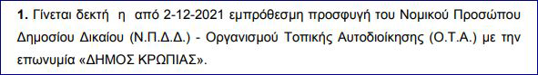 Γίνεται δεκτή η από 2-12-2021 εμπρόθεσμη προσφυγή του Νομικού Προσώπου Δημοσίου Δικαίου (Ν.Π.Δ.Δ.)