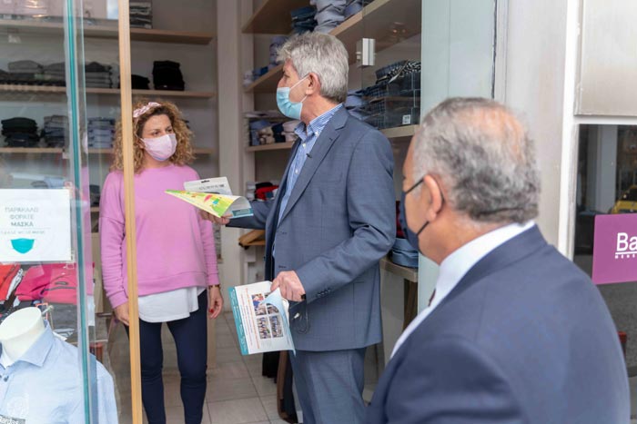 Με μεγάλη χαρά ήρθαμε εδώ στην κεντρική πλατεία και ξεκινάει μία περιοδεία για την ενημέρωση τόσο των επαγγελματιών της περιοχής όσο και του κοινού. Είναι για τις ασφαλείς αγορές μας, για να παραμείνουν τα καταστήματα ανοιχτά και ένα μήνυμα προς τους καταναλωτές- συμπολίτες μας ότι πρέπει να ψωνίζουν από την τοπική αγορά για να την κρατήσουμε όρθια. Όλοι μας πρέπει να κάνουμε μία προσπάθεια, εναρμονισμένοι με τα μέτρα που έχουν καθοριστεί από την Πολιτεία, για να διατηρήσουμε τις επαγγελματικές αυτές δραστηριότητες ανοιχτές το επόμενο διάστημα μέχρι να ολοκληρωθεί και ο εμβολιασμός, πιστεύουμε μέχρι το καλοκαίρι, το πολύ μέχρι τον Σεπτέμβριο.Ευχαριστούμε πάρα πολύ κύριε Χατζηθεοδοσίου.
