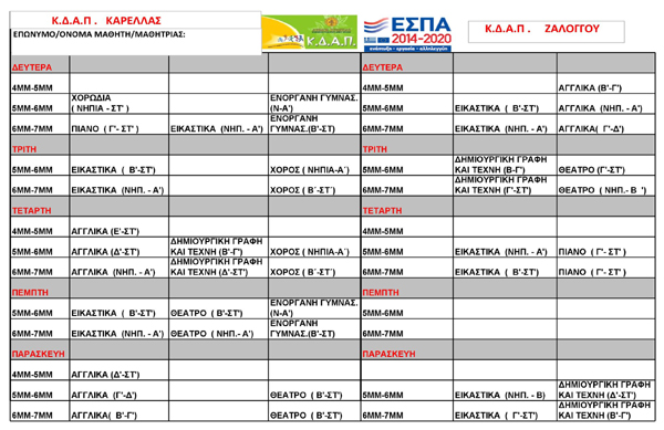 Πληροφορίες-εγγραφές καθημερινά 14:00-19:00.Τηλ.210-602896.