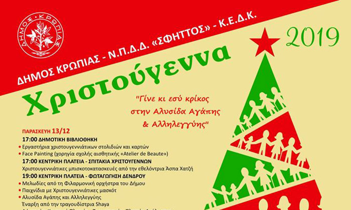 Με μεγάλη χαρά ανακοινώνουμε τις εορταστικές εκδηλώσεις για τα φετινά Χριστούγεννα και καλούμε όλους τους δημότες και φίλους του Δήμου Κρωπίας
