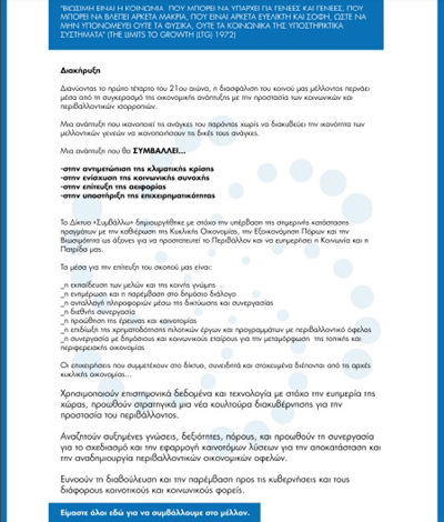 και την Κυκλική Οικονομία” διοργανώνει το νεοσύστατο δίκτυο “ΣΥΜΒΑΛΛΩ”, την Τετάρτη 22 Φεβρουαρίου και ώρα 12μμ στο Ξενοδοχείο “Στράτος Βασιλικός”. Πρόκειται για μια πρωτοβουλία που στοχέυει στο να διαδραματίσει σημαντικό ρόλο στην αντιμετώπιση της κλιματικής κρίσης, την υποστήριξη της επιχειρηματικότητας, την επίτευξη της αειφορίας και την ενίσχυση της κοινωνικής συνοχής.