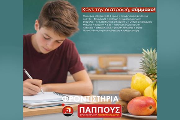 Στα Φροντιστήρια ΠΑΠΠΟΥΣ πιστεύουμε ότι ο μαθητής χρειάζεται καθαρό μυαλό, ενέργεια και αντοχή,