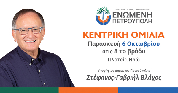 Την Κυριακή 15 Οκτωβρίου ΨΗΦΙΖΟΥΜΕ ΕΝΩΜΕΝΗ ΠΕΤΡΟΥΠΟΛΗ! Το ΜΕΛΛΟΝ της πόλης βρίσκεται στα χέρια όλων μας!