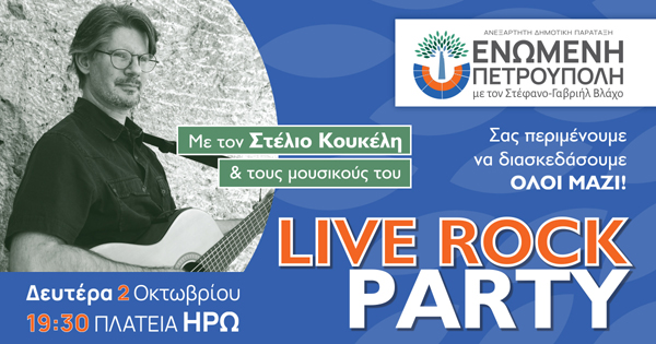Η Ανεξάρτητη Δημοτική Παράταξη "ΕΝΩΜΕΝΗ ΠΕΤΡΟΥΠΟΛΗ" διοργανώνει ένα δυναμικό LIVE ROCK PARTY