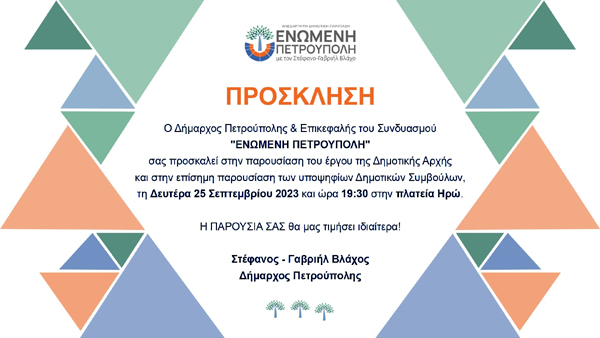 Ο Δήμαρχος Πετρούπολης & Επικεφαλής του Συνδυασμού "ΕΝΩΜΕΝΗ ΠΕΤΡΟΥΠΟΛΗ"