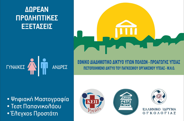 Ο Δήμος Πετρούπολης, μέσω του ΚΕΠ Υγείας της Διεύθυνσης Παιδείας, Πρόνοιας &
