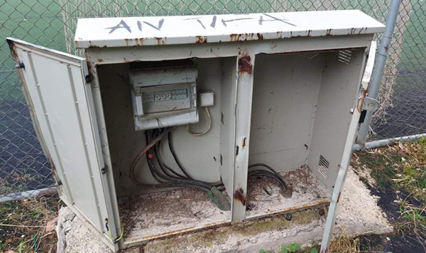 Οι προβολείς έχουν πολλές ζημιές ενώ όπως φαίνεται έχουν αφαιρεθεί καλώδια και άλλο ηλεκτρολογικό υλικό.