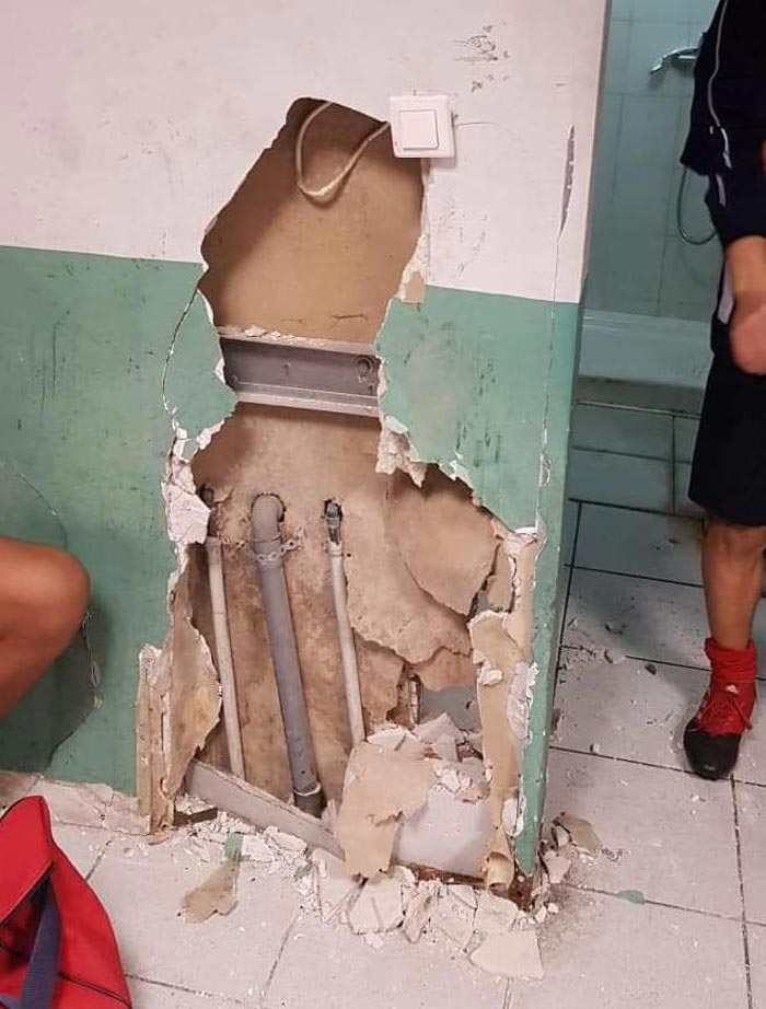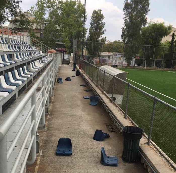 Τι κάνουν όμως για τα σοβαρά́ προβλήματα των αθλητικών εγκαταστάσεων ;;; Από́ ό,τι φαίνεται δεν τους απασχολούν και πολύ́, άποψη που ενισχύεται ακόμα περισσότερο και από το γεγονός, ότι ακόμα και στα τηλέφωνα και τα μηνύματά μας, απαξιούν να απαντήσουν. Εμείς δημοσιεύουμε σήμερα ενδεικτικές φωτογραφίες από́ την κατάσταση των εγκαταστάσεων του «Τάκης Χαραλαμπίδης», με την ελπίδα πως θα ευαισθητοποιηθούν οι αρμόδιοι. Καλούμε και τα υπόλοιπα αθλητικά́ σωματεία της πόλης μας, για να διεκδικήσουμε από́ όλους τους αρμόδιους κρατικούς φορείς, την αναγκαία χρηματοδότηση για την αντιμετώπιση των προβλημάτων και τον εκσυγχρονισμό́ όλων των αθλητικών εγκαταστάσεων της πόλης μας. Παράλληλα, παίρνουμε πρωτοβουλία και καλούμε όποιον συμπολίτη μας θέλει, να συμβάλλει στην προσπάθεια που θα κάνουμε για να δώσουμε ,αν συνεχιστεί́ αυτή́ η κατάσταση, από́ μόνοι μας λύση σε κάποια προβλήματα των εγκαταστάσεων, όπως άλλωστε κάναμε και στο παρελθόν με κάποια από́ τα αποδυτήρια και τα γραφεία των διαιτητών στο «Τ. Χαραλαμπίδης», ώστε με την έναρξη των αθλητικών δραστηριοτήτων όλοι οι αθλητές να αισθάνονται μεγαλύτερη ασφάλεια και σιγουριά́.