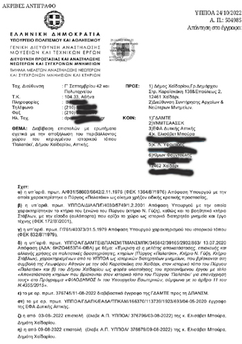 Ακολουθεί η επιστολή του Υπουργείου Πολιτισμού προς τον Δήμο Χαϊδαρίου.