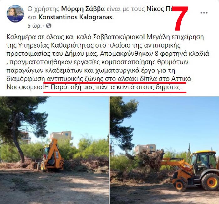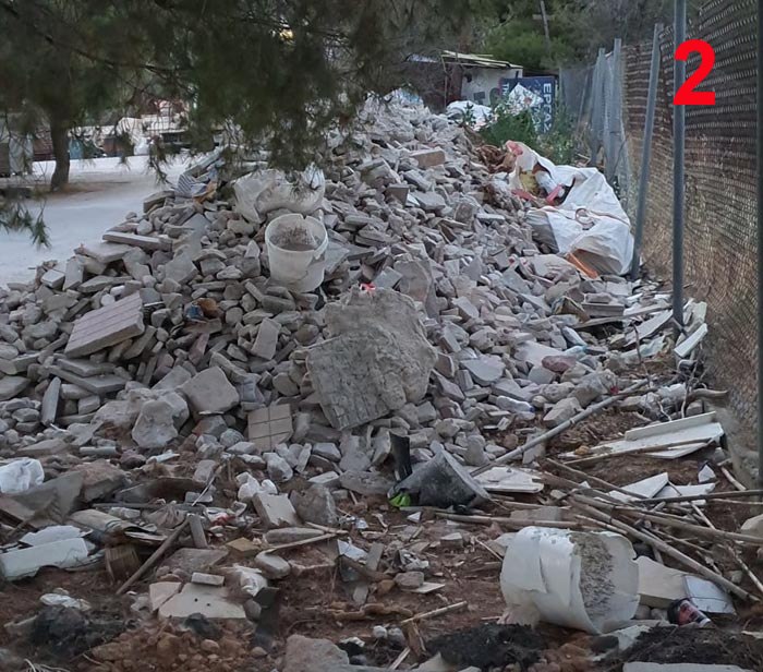 *που από την μία φωτογραφίζεται μαζεύοντας σκουπιδάκια στο Δαφνί πλασάροντας την δήθεν ευαισθησία του για το περιβάλλον και από την άλλη θάβει πεύκα με μπάζα στην αυλή της αυτεπιστασίας (φώτο 3),