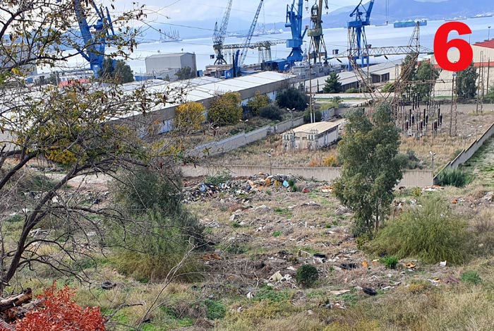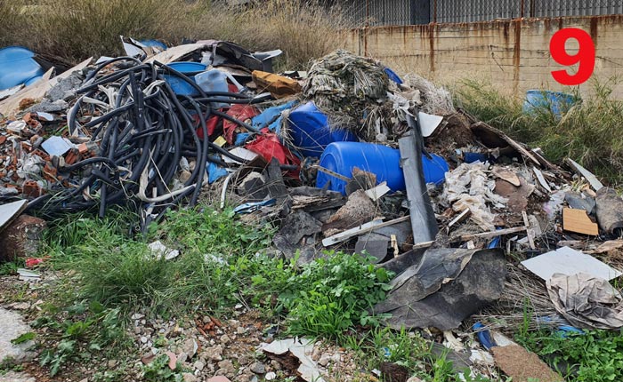 Ουσιαστικά ένας παράνομος Χώρος Ανεξέλεγκτης Διάθεσης Απορριμάτων (ΧΑΔΑ) στο οικόπεδο του Δήμου. Ένα απίστευτο περιβαλλοντικό χάος! Στον συγκεκριμένο χώρο αλλά και περιμετρικά έξω από αυτόν, υπάρχουν σοροί από σπασμένα ελενίτ, αμιαντοσωλήνες, ασφαλτόπανα, διάφορα πλαστικά βαρέλια που είχαν άγνωστο περιεχόμενο, ακόμα και συσκευασίες από ναυτιλιακά υλικά. Όλα αυτά συγκαταλέγονται στα επικίνδυνα και τοξικά απόβλητα.