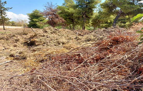 Πάλι γέμισε κλαδιά ξερά και ελλοχεύει ο κίνδυνος πυρκαγιάς αφού ο χώρος είναι αφύλακτος και προσβάσιμος στον καθένα. Το συγκεκριμένο σημείο βρίσκεται μεταξύ υπηρεσίας πρασίνου και Αττικού Νοσοκομείου, ενώ σημειωτέον δε, ο γύρω περιβάλλοντας χώρος είναι κατάφυτος από πεύκα. Αξίζει να σημειωθεί, ότι αντί να καταλήγουν τα κλαδέματα στο ΕΜΑΚ Φυλής για κομποστοποίηση, στοιβάζονται στον συγκεκριμένο χώρο.
