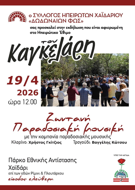 Σας προσκαλούμε και σας περιμένουμε όλους στην εκδήλωση για την αναβίωση του εθίμου του «ΚΑΓΚΕΛΑΡΗ» να ανταλλάξουμε ευχές και να τσουγκρίσουμε κόκκινα αυγά.