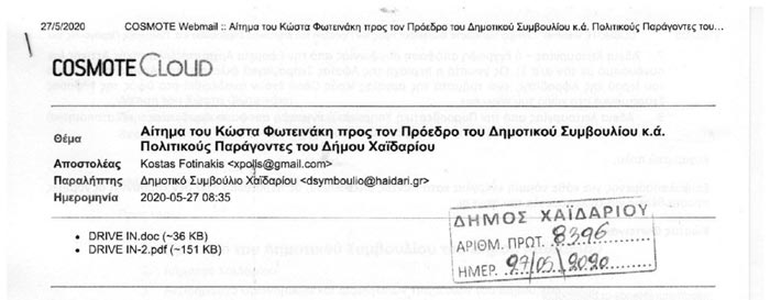 Αίτηση του Κώστα Φωτεινάκη