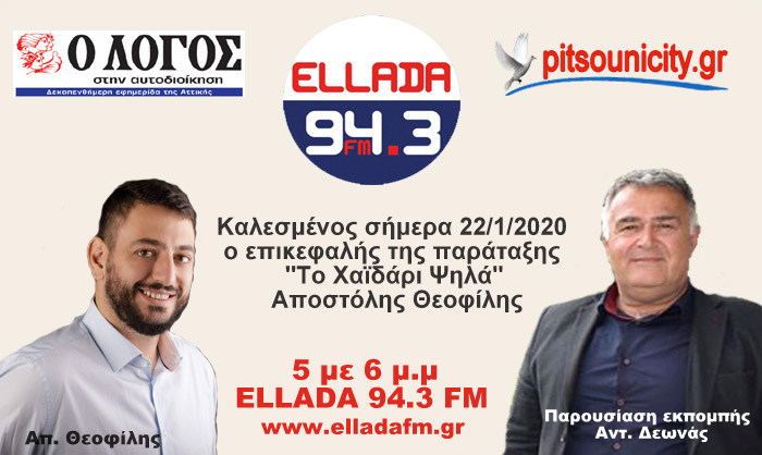 Μη χάσετε την σημερινή αποκαλυπτική εκπομπή 22/1/20120 «Ο ΛΟΓΟΣ στην αυτοδιοίκηση» που μεταδίδεται από τον «ELLADA 94.3 FM»