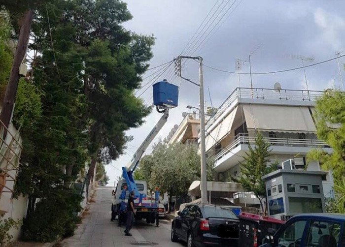 Τεχνικό Συνεργείο του Δήμου Χαϊδαρίου σήμερα Παρασκευή 20 Σεπτεμβρίου πραγματοποίησε με χρήση ανυψωτικού μηχανήματος αντικατάσταση καμένων λαμπτήρων