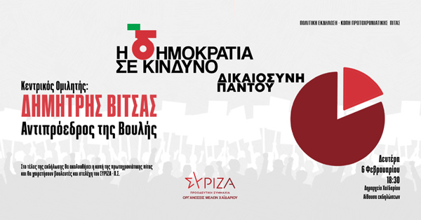 Οι οργανώσεις μελών ΣΥ.ΡΙΖ.Α - Π.Σ. Χαϊδαρίου διοργανώνουν τη Δευτέρα 6 Φεβρουαρίου