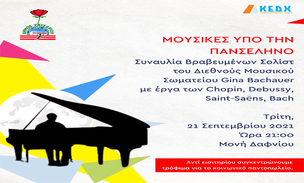Σήμερα Τρίτη 21 Σεπτεμβρίου, ο Δήμος Χαϊδαρίου διοργανώνει συναυλία Βραβευμένων Σολίστ του Διεθνούς Μουσικού Σωματείου Gina Bachauer