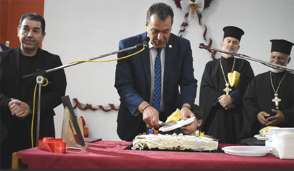 ο Δήμαρχος Φυλής Χρήστος Παππούς ,στην εκδήλωση, που πραγματοποιήθηκε στο Πνευματικό Κέντρο Ζεφυρίου, για την κοπή της Πρωτοχρονιάτικης Βασιλόπιτας της Δημοτικής Ενότητας. Την Βασιλόπιτα ευλόγησαν ο π. Θεοφάνης Θεοφάνους από τον Ι.Ν Παναγίας Γρηγορούσας και ο π. Στέφανος Γεωργαλής εφημέριος του Ι.Ν. Αγίου Στυλιανού οι οποίοι ευχήθηκαν στον κόσμο καλή και ευλογημένη χρονιά με υγεία, αλληλεγγύη και αγάπη. Ο οικοδεσπότης της εκδήλωσης Αντιδήμαρχος Ζεφυρίου Γιάννης Μαυροειδάκος καλωσόρισε τον κόσμο, τον ευχαρίστησε για την παρουσία του και ευχήθηκε καλή χρονιά με υγεία και πρόοδο για όλους, παραδίδοντας τη σκυτάλη στο Δήμαρχο Φυλής.