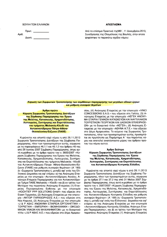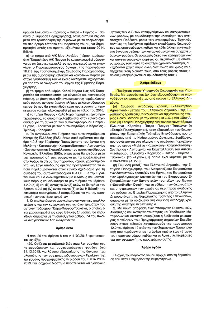 Το μεγάλο φαγοπότι στις κοστολογήσεις των εθνικών οδών άρχισε βέβαια με τις συμβάσεις , τις επαναλαμβανόμενες αναθεωρήσεις των έργων και τις χαριστικές διατάξεις , (εικ.3) που περνούσαν σχεδόν πάντα νύχτα από τη Βουλή οι πολιτικοί μας, προς όφελος πάντα των εργολάβων και εις βάρος του ελληνικού δημοσίου (εικ.2)